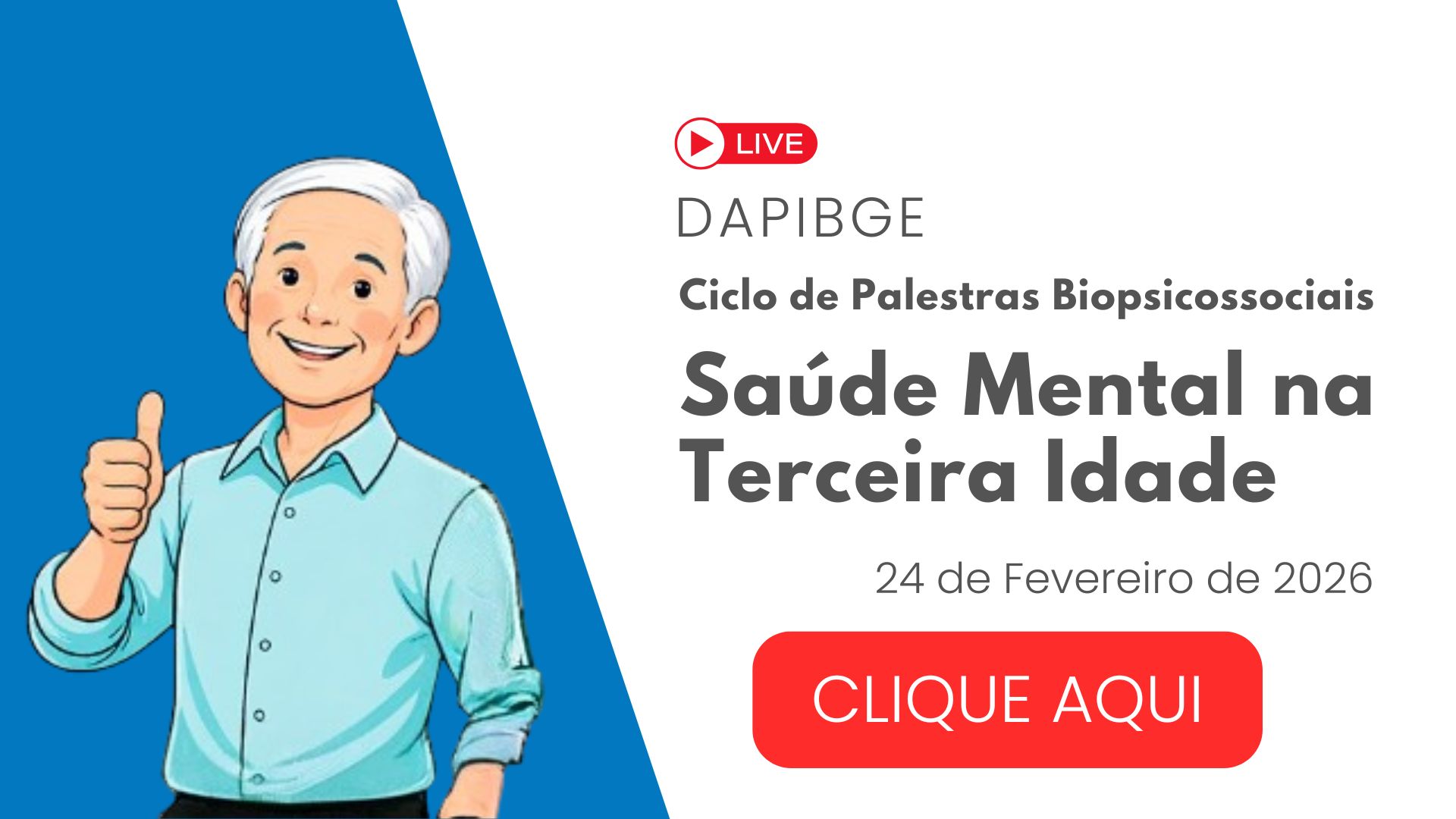 DAPIBGE News, Destaque Principal Ciclo de Palestras Biopsicossociais – Saúde Mental na Terceira Idade 19 fevereiro 2026