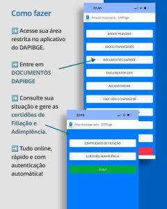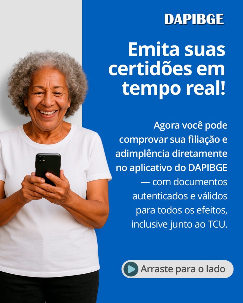 Para facilitar a comprovação de adimplência e filiação, lembramos que ambos os documentos – a Certidão de Filiação e a de Adimplência – podem ser emitidos diretamente pelo associado através de sua área restrita no aplicativo do DAPIBGE. Esta funcionalidade permite que cada associado consulte sua situação em tempo real e emita documentos devidamente autenticados.