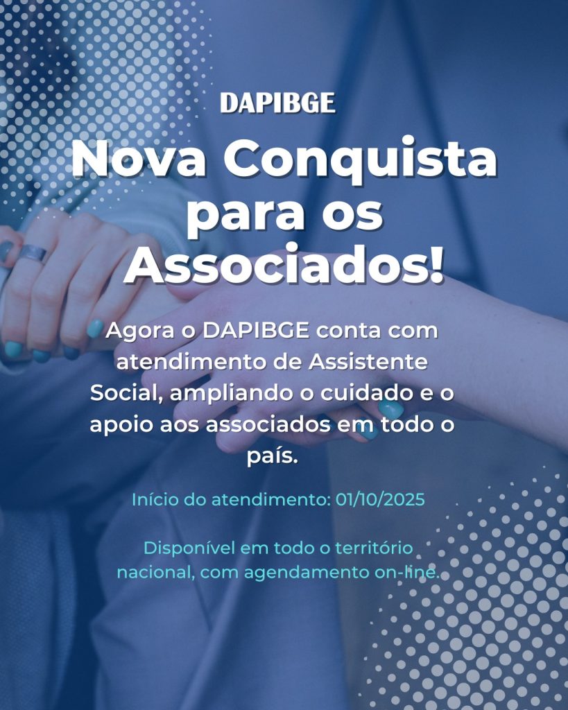 A partir de 01-10-2025, colocamos à sua disposição um serviço de assessoria em serviço social e atenção aos associados do DAPIBGE, conforme delineado nas cláusulas contratuais. O trabalho será realizado observando rigorosamente o Código de Ética Profissional e as diretrizes da profissão, garantindo qualidade e compromisso ético no atendimento.