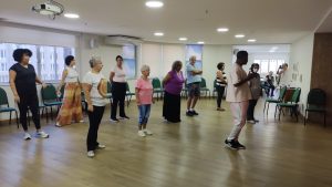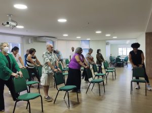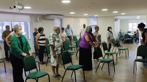 Os 42 associados presentes no Aulão Inaugural puderam sentir na prática o propósito deste projeto, que é literalmente “sacudir a goiabeira” e ajudar os sócios a deixarem de lado a preguiça e colocarem o corpo em movimento. Em um momento emocionante de abertura, o Dr. Júlio Dutra destacou a importância da atividade física na rotina dos idosos: