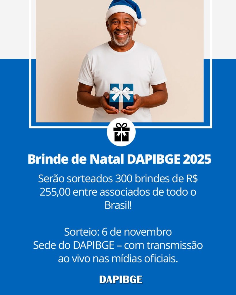 O DAPIBGE dará continuidade a uma de suas tradições mais esperadas: o Brinde de Natal, destinado aos associados das Unidades da Federação e àqueles que residem fora da Região Metropolitana do Rio de Janeiro.