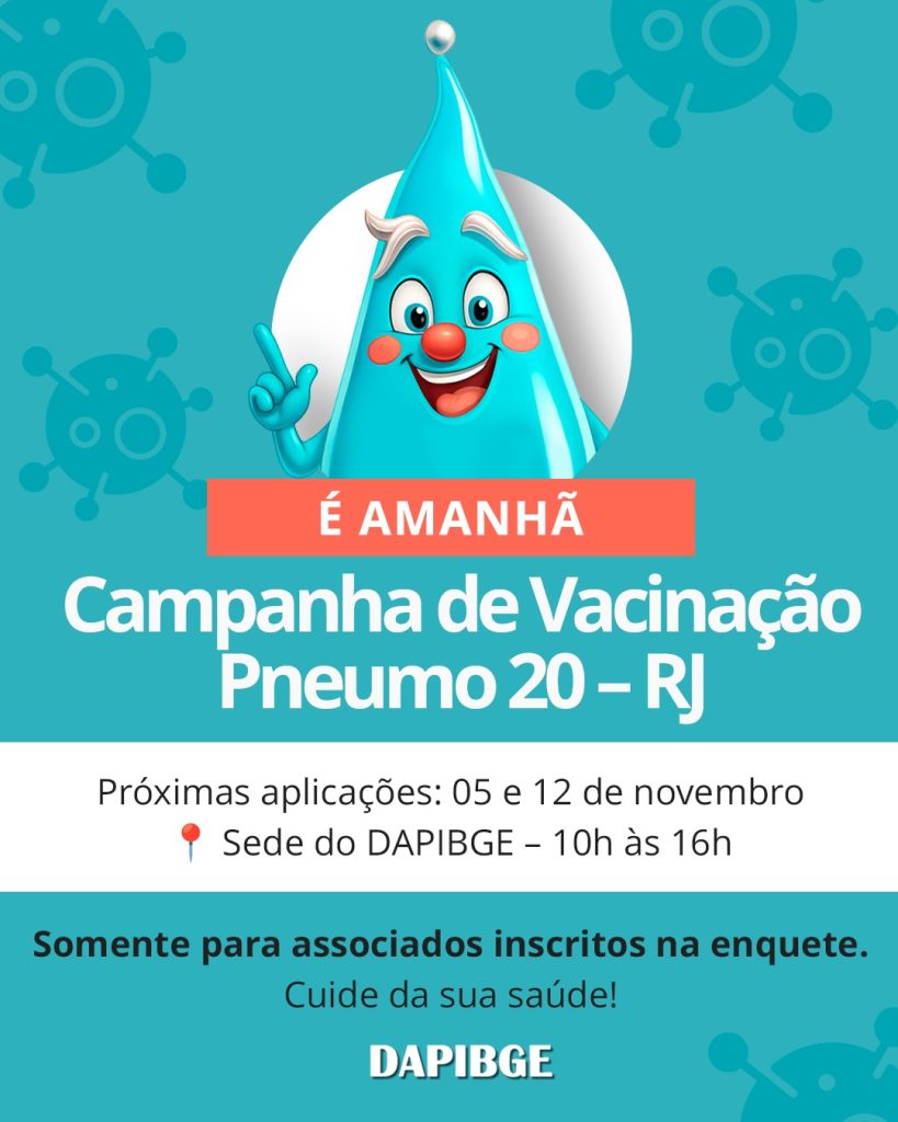 É amanhã! A Campanha de Vacinação Pneumo 20 continua no Rio de Janeiro!