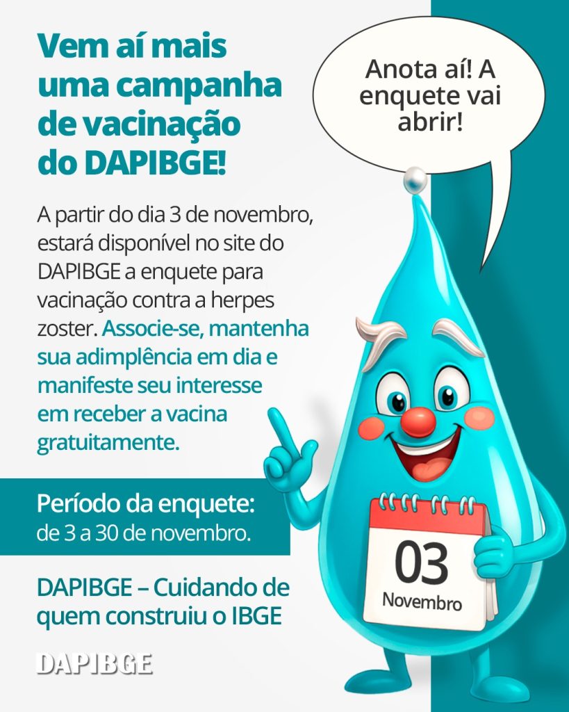De 3 a 30 de novembro, estará disponível em nosso site a enquete sobre a campanha de vacinação contra o herpes zoster, também conhecido como cobreiro.