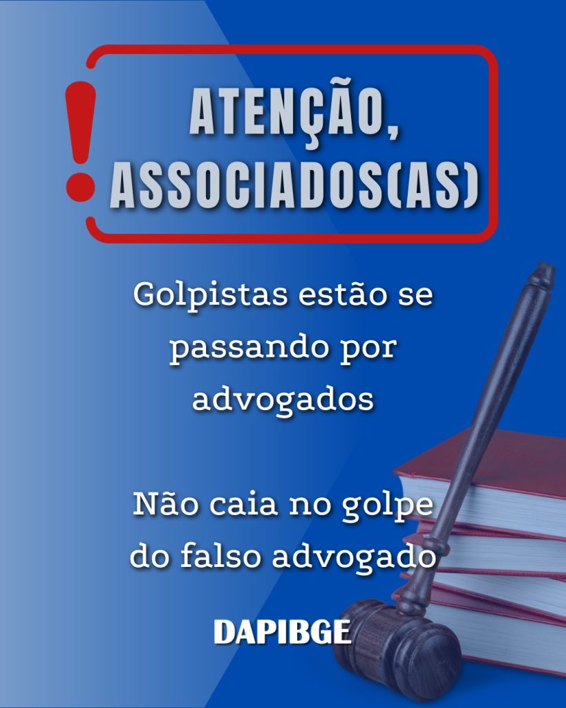 A DAPIBGE alerta seus associados(as) para a ocorrência de golpes praticados por criminosos que se passam por advogados ou representantes de escritórios de advocacia, utilizando indevidamente dados públicos de processos judiciais para aplicar fraudes, principalmente por meio do aplicativo WhatsApp.