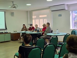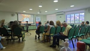 Na sequência, contamos com a palestra do assistente social Fábio Soares, que abordou o tema do alcoolismo na terceira idade, trazendo reflexões importantes sobre saúde, qualidade de vida e a importância de reconhecer o momento de buscar ajuda.